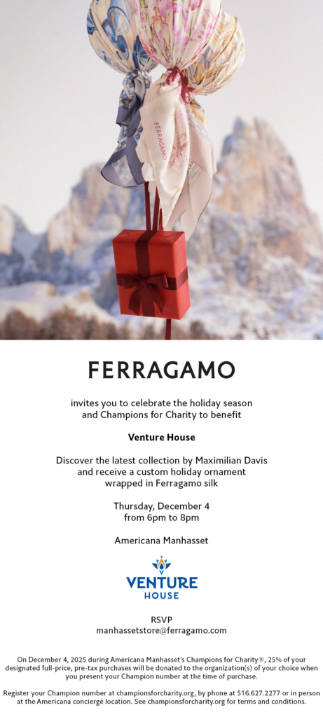 Join us on Thursday, December 4, 2025, from 6–8 PM as we kick off the Champions for Charity shopping benefit with Ferragamo, celebrating their support for mental health in our community.