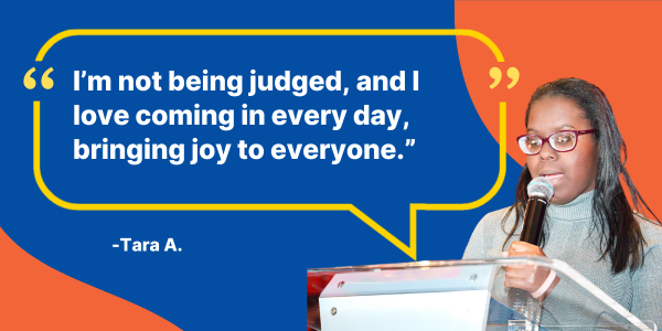 “I feel like this was the place where I needed to be,” said Tara. “I’m not being judged and I love coming in every day, bringing joy to everyone.”